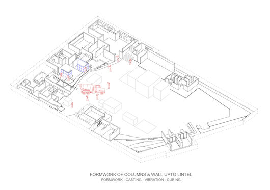 This course continued the previous design to further articulate detailed development stages for the built form through the technical resolution of structural systems, material performance, and experience, threshold-enclosure details, and process of construction. Further, it allowed us to bridge the gap between the design from concept to actualization and generate a construction documentation set along with specifications, quantities, estimation, and putting together different materials and their assemblies in a manner that is conceptually coherent with the overall idea of the building.